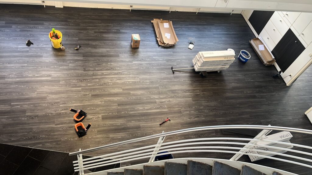In den Büroräumen von Andra Steuerberater & Co. in Stuttgart-Weiblingen haben wir im Oktober 2022 über 300 m² Designbelag präzise verlegt.